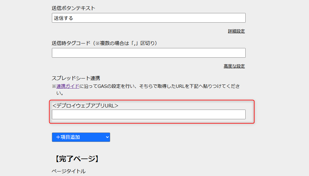 コピペしたURLをフォーム生成アプリ内の下記部分へ貼りつけてください。